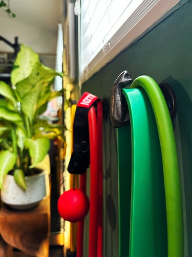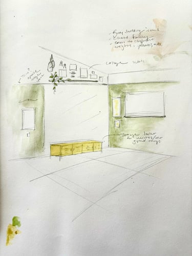 To maximize the space while keeping it lively and comfortable, we carefully balanced design with practicality: the bottom half of the walls features a simple faux lime wash, protecting the space from natural wear and tear while allowing all the action to happen above, safe from scuffs and bumps during workouts.